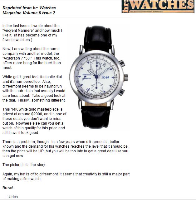 Information on every d.freemont watch ever produced.